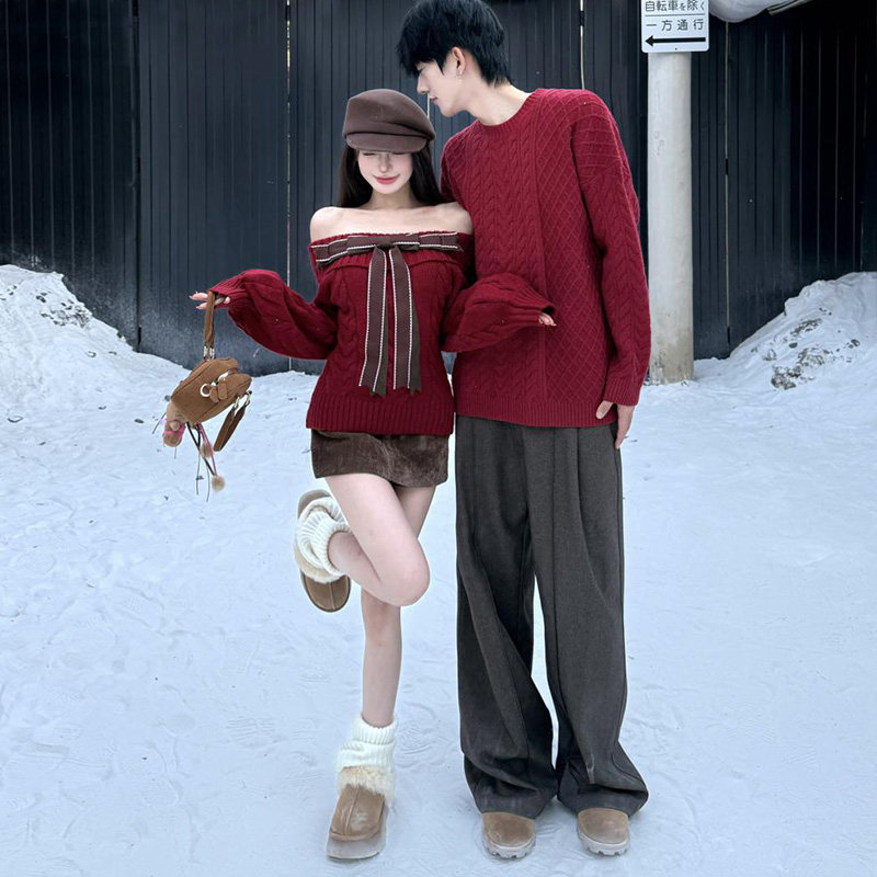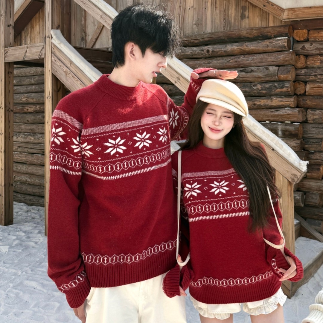 disoo情侣装冬装毛衣2025新款红色圣诞节新年一裙一衣针织衫套装