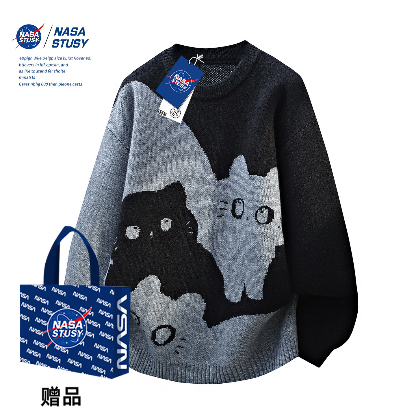 NASA STUSY美式高街2025新款秋冬装男款针织衫情侣宽松潮牌毛衣