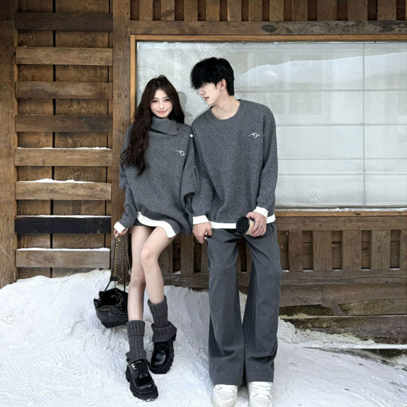 disoo情侣装冬装2026春秋季韩款遮臀针织衫套装高级感中长款毛衣