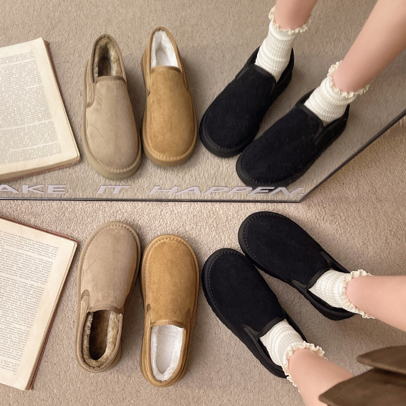 大码女毛毛鞋41一43防滑厚底低帮雪地靴女一脚蹬冬季皮毛一体棉鞋