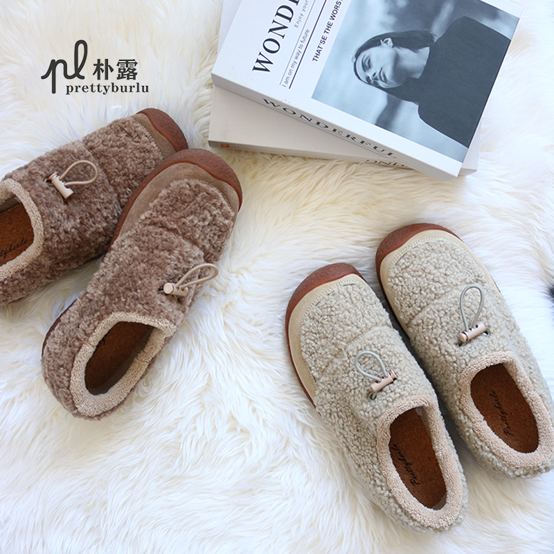 朴露恩雅的店复古小羊蹄毛毛鞋百棉鞋女软底毛绒鞋秋冬一脚蹬大码