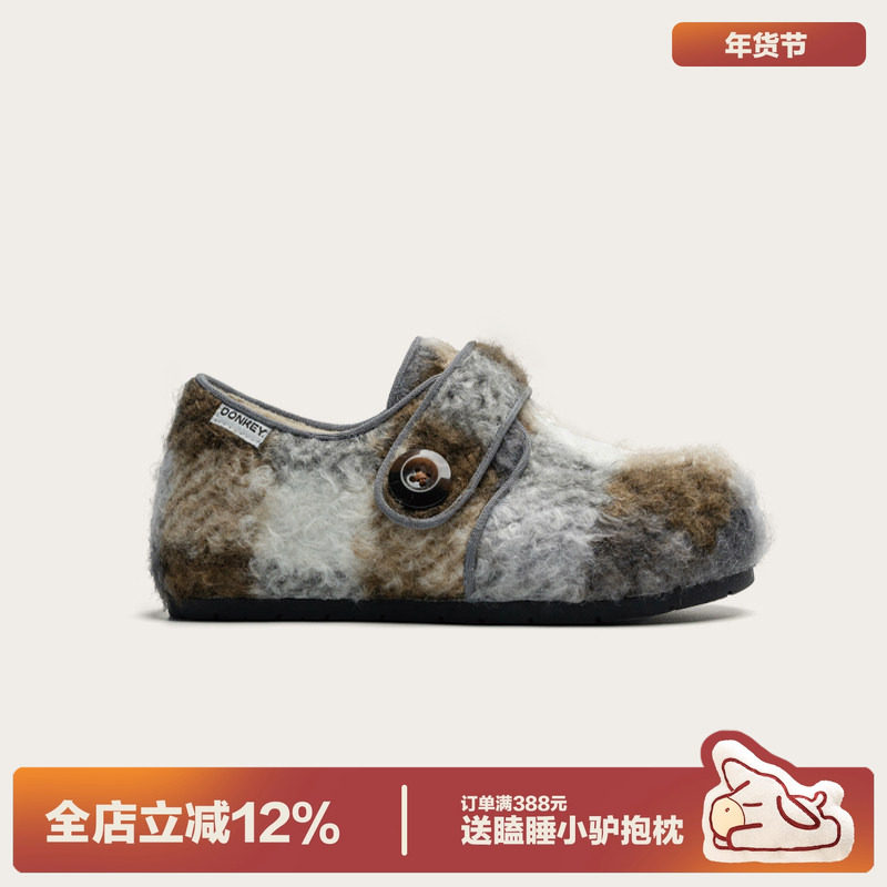 多嘴驴Donkey魔术贴毛毛鞋女秋冬加绒保暖棉鞋大码全包毛绒勃肯鞋