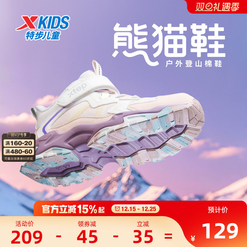 特步童鞋2025冬季新款女童休闲保暖棉鞋中大童学生防滑耐磨休闲鞋