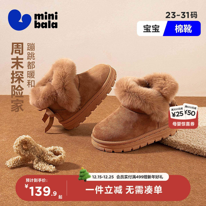 迷你巴拉冬季加绒保暖新款女童雪地靴学生靴子小童棉鞋宝宝学步鞋