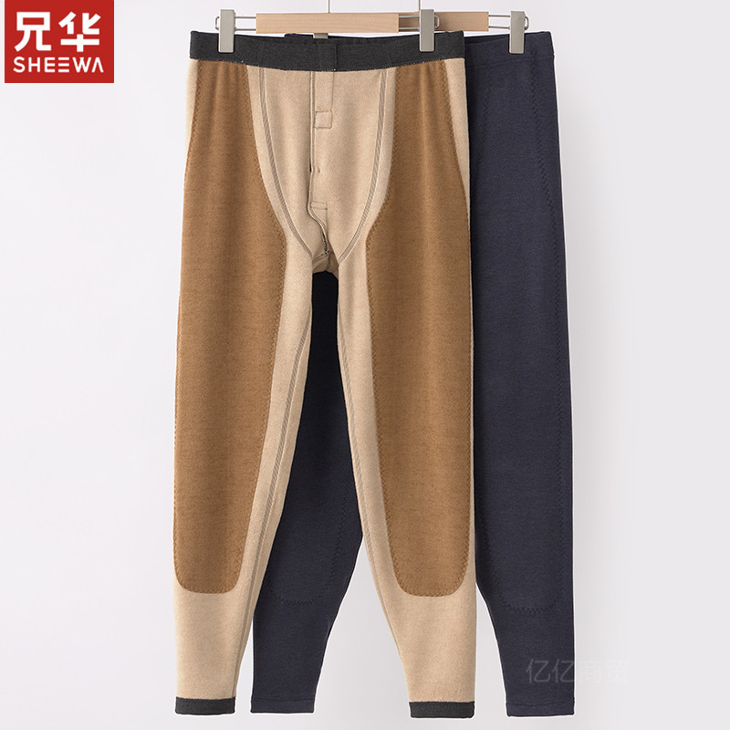 兄华新款男士加绒加厚蚕丝保暖裤驼绒护膝护腰高腰发热绒裤棉裤冬