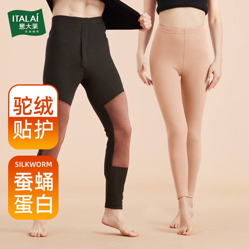 CarreKenbt驼绒护膝保暖裤男士加厚发热德绒线裤羊毛蚕丝棉裤男冬