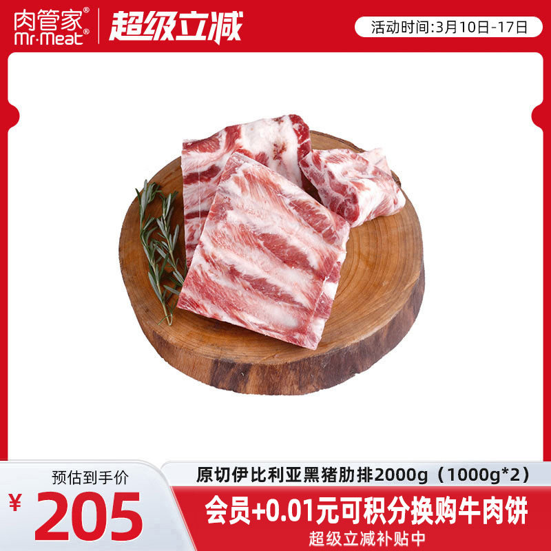 肉管家西班牙原切伊比利亚黑猪肋排2000g猪排骨精修去油版型完整