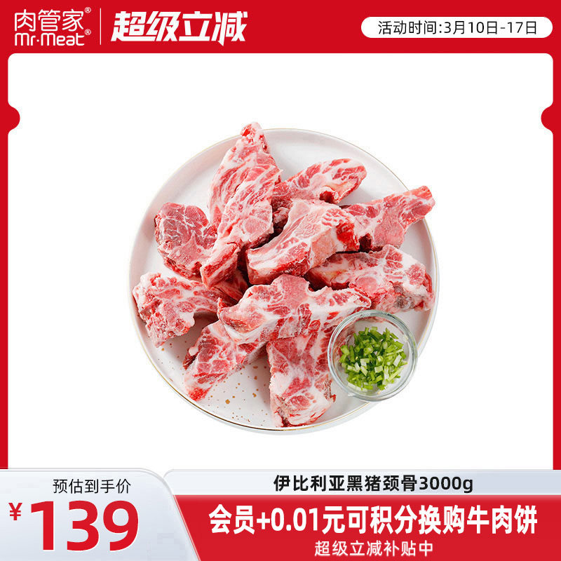 肉管家西班牙原切伊比利亚黑猪肋排1000g精修猪排骨版型完整