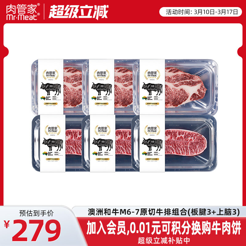 肉管家澳洲原切谷饲纯种和牛M6-7肥牛片前胸保乐肩火锅套餐旗舰店