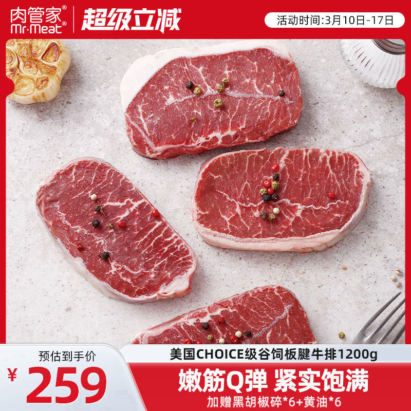 肉管家原切Choice级谷饲西冷谷饲板腱牛排1200g冷冻生鲜牛扒牛肉
