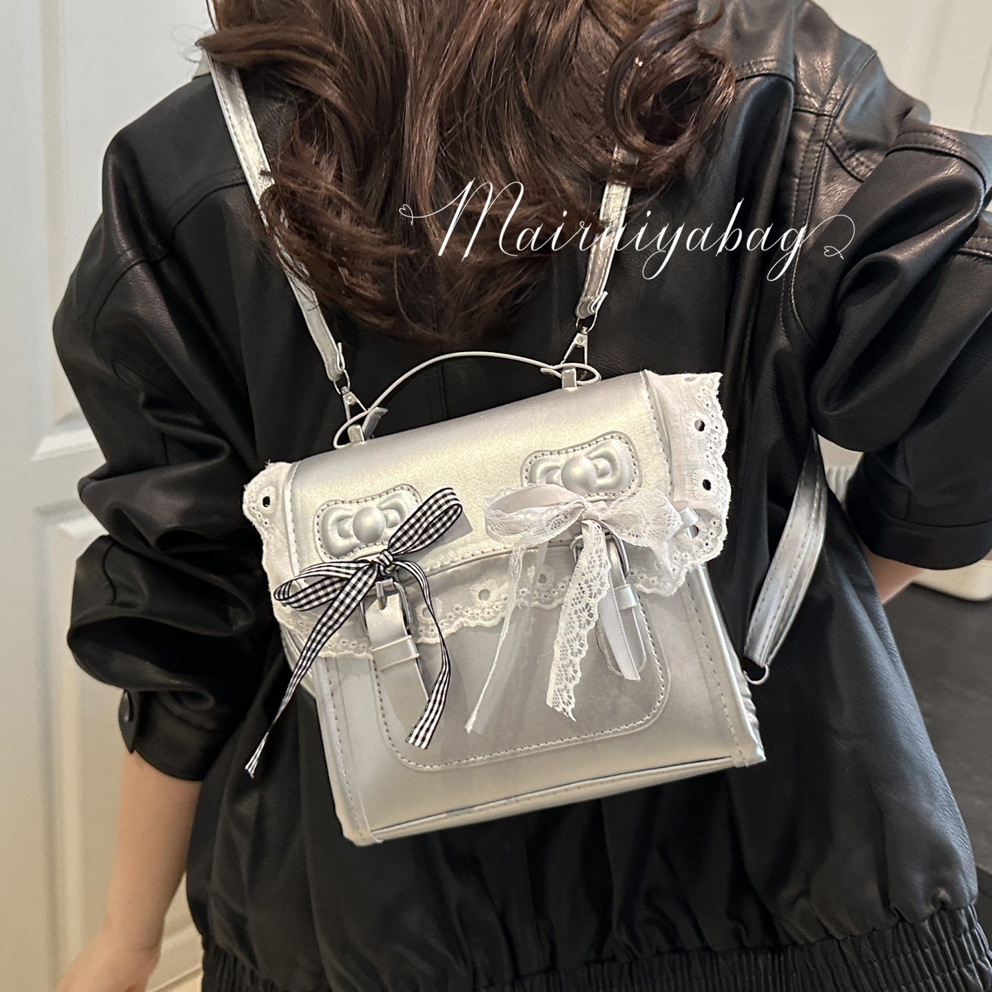 甜美蕾丝邮差双肩包包女2025新款潮时尚学院风背包百搭手提旅行包