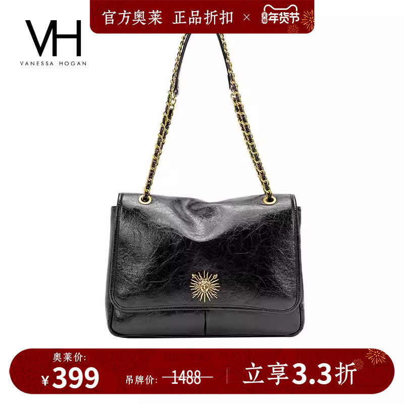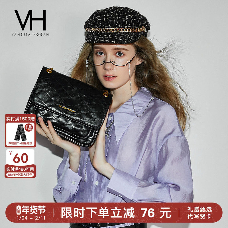 VH女包克斯油蜡腋下包高级感链条斜挎包洋气邮差包通勤真皮单肩包