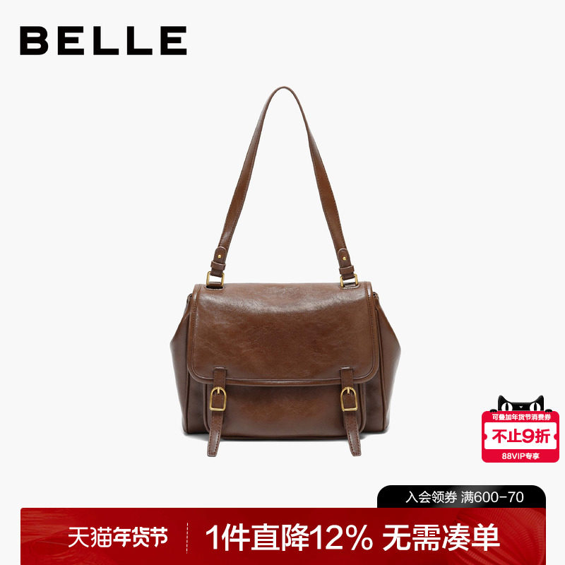 百丽女包2026新款复古邮差包油蜡质感单肩包大容量斜挎包F3106AX6