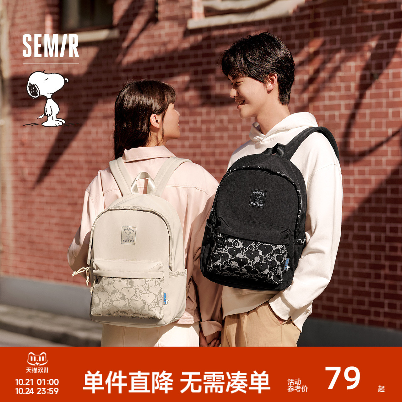 森马双肩包男史努比系列卡通印花情侣户外背包大容量通勤电脑包女