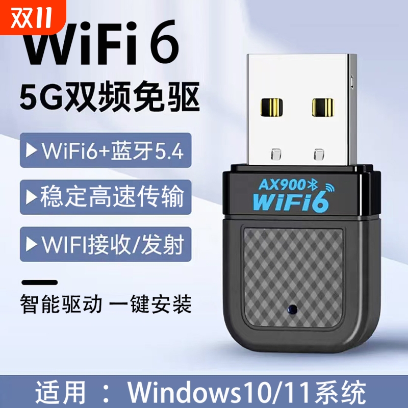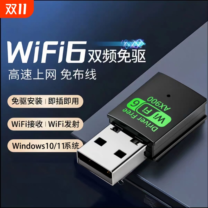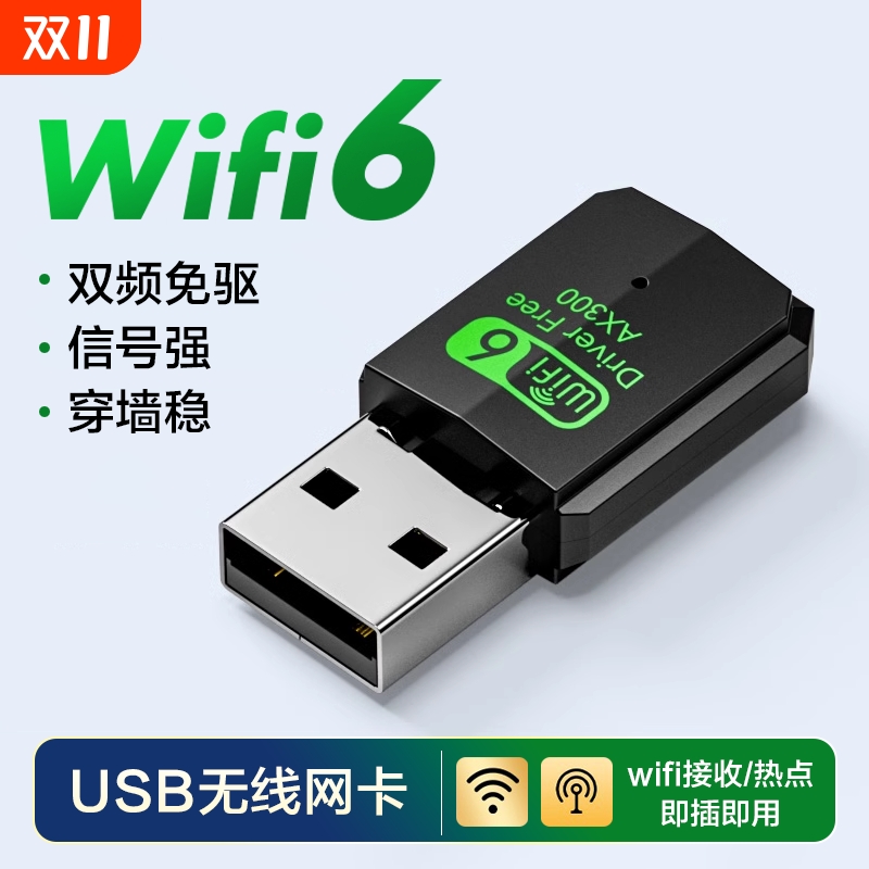 USB无线网卡wifi6免驱动双频千兆双频台式机usb接收器台式电脑发射5G高速笔记本网络wifi大功率接收信号器
