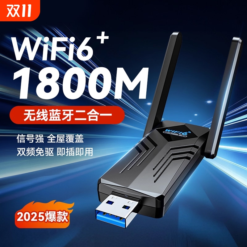usb无线网卡wifi6台式电脑笔记本免驱双频外置主机千兆内置发射器蓝牙5.4二合一2025新款wifi网络信号接收器