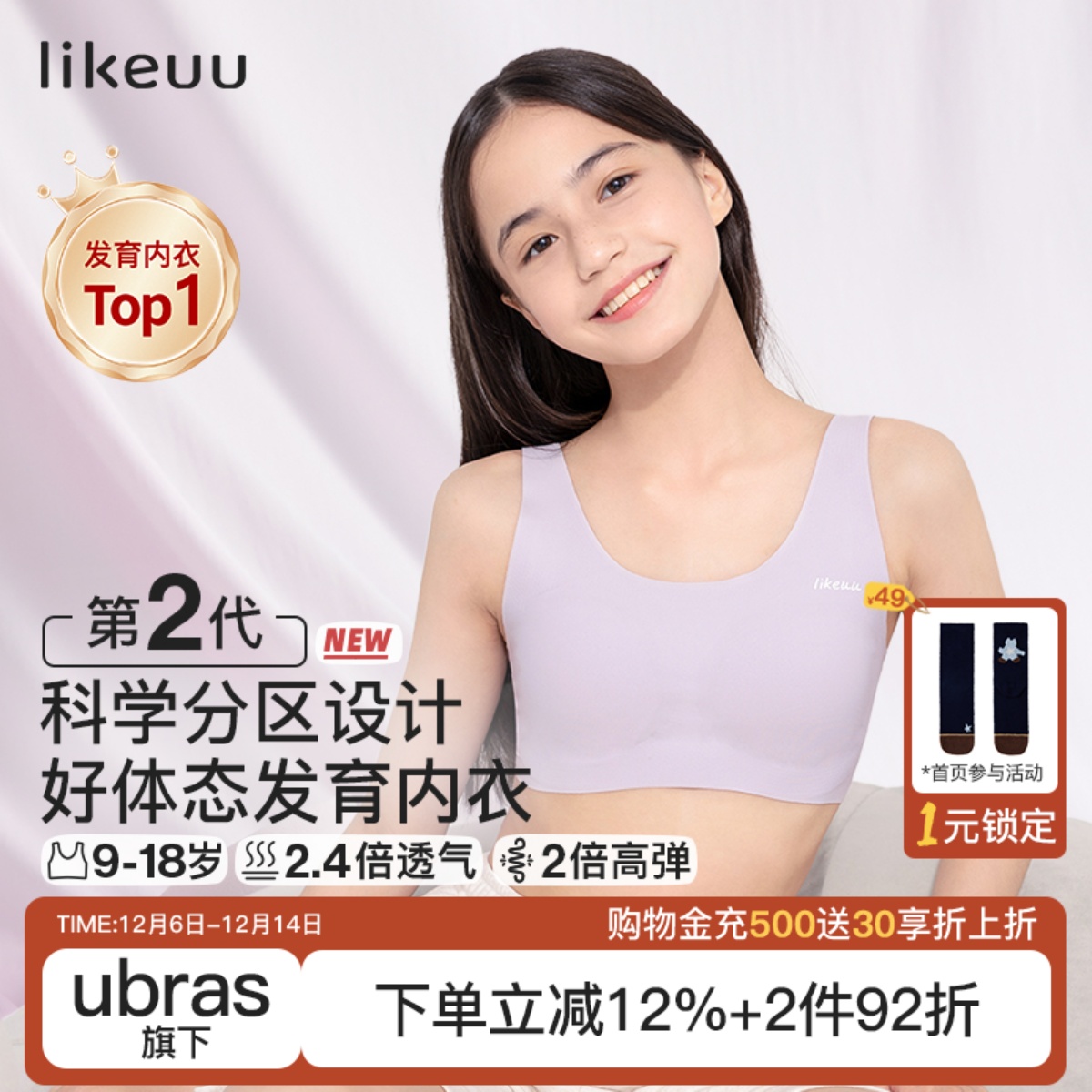 ubras儿童likeuu少女内衣粉底液隐形文胸学生女大童发育期小背心