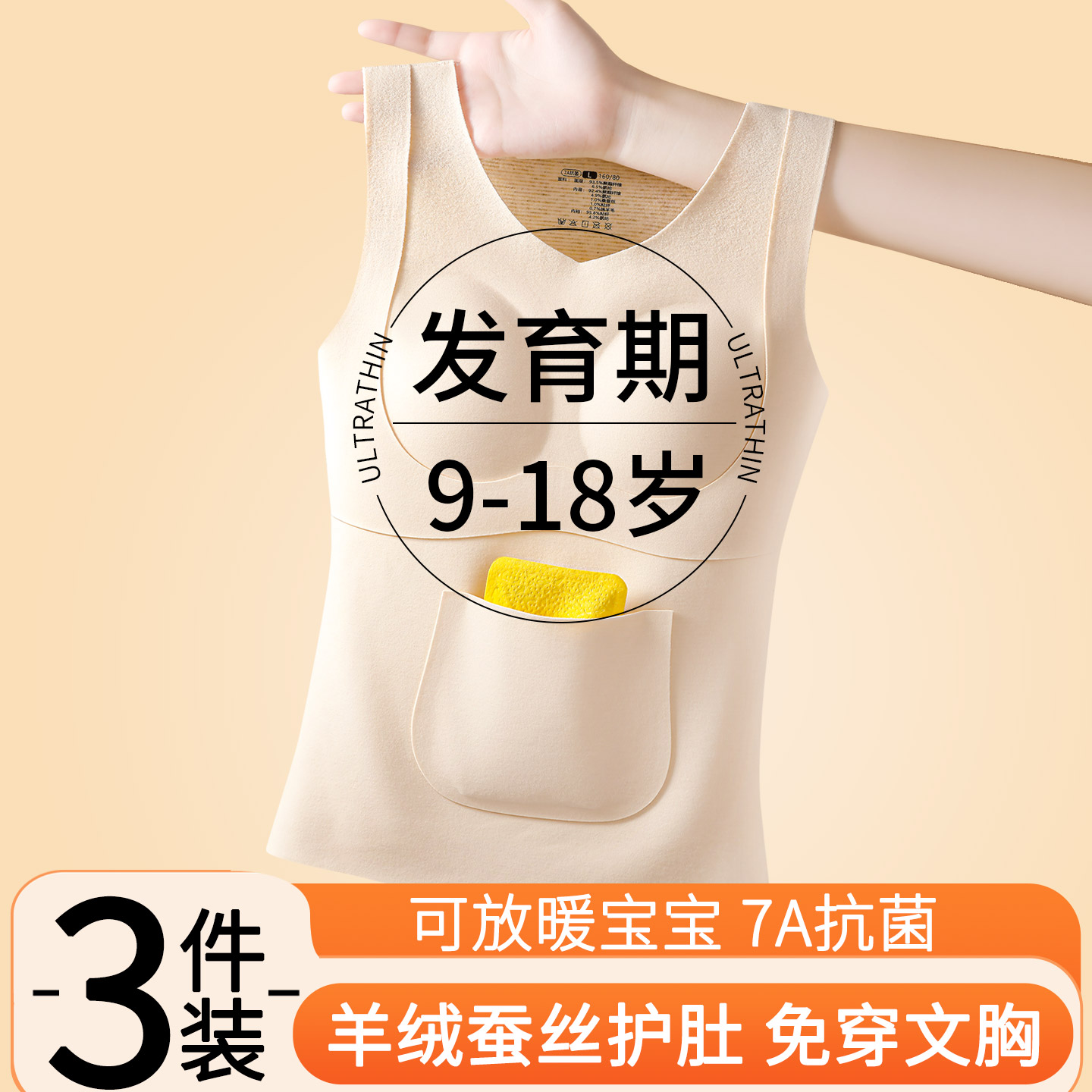 女大童发育期保暖背心带胸垫初高中学生羊绒护肚马甲少女内衣文胸