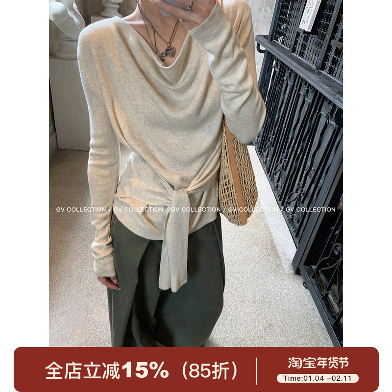 GV大白哥 松弛高智 荡领松弛腰带收腰毛针织衫上衣早秋女装新款