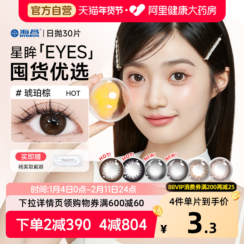 【自营】海昌星眸美瞳日抛30片隐形近视眼镜自然小直径大正品官方