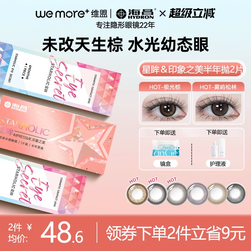 海昌【星眸-印象之美系列】美瞳自然小直径半年抛2隐形眼镜正品