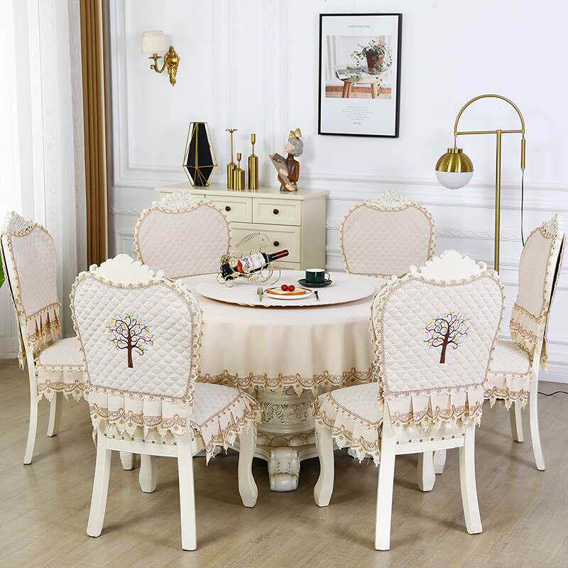 圆餐桌桌布带转盘套台布家用欧式椅垫椅套高级感现代简约防水防油