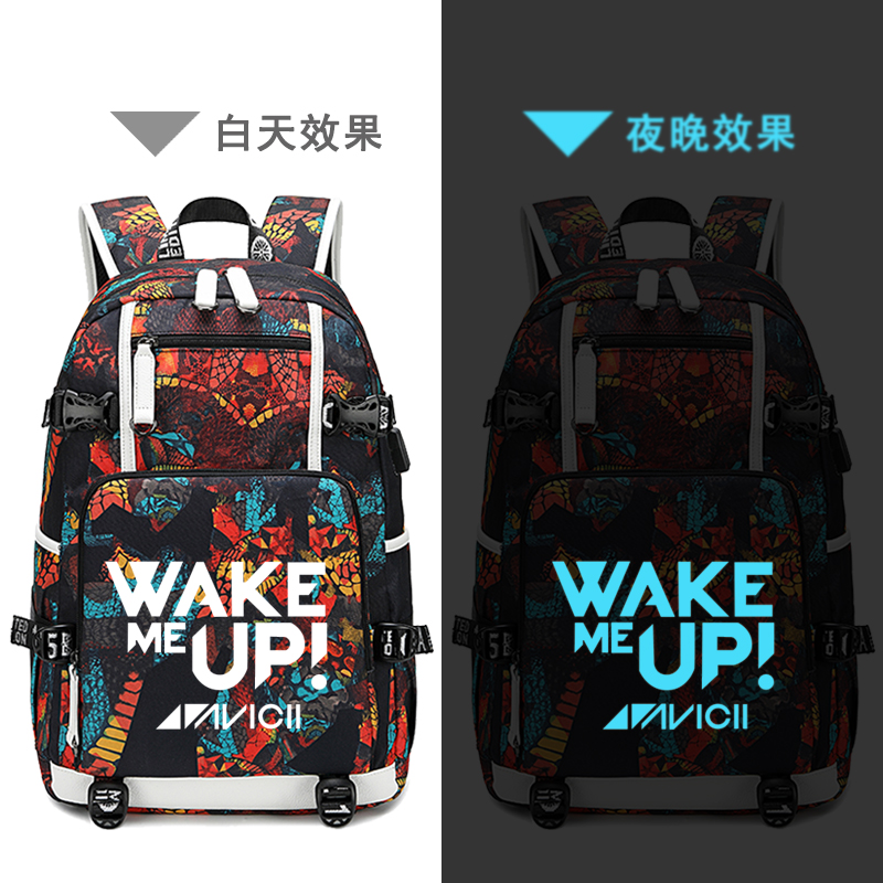 电音Avicii周边A神DJ青年中学生书包双肩包背包男女夜光潮流印花