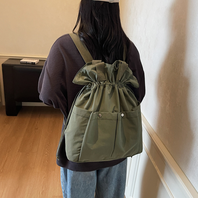 春季新款多巴胺布艺双肩包文艺青年褶皱云朵抽绳背包轻便休闲女包