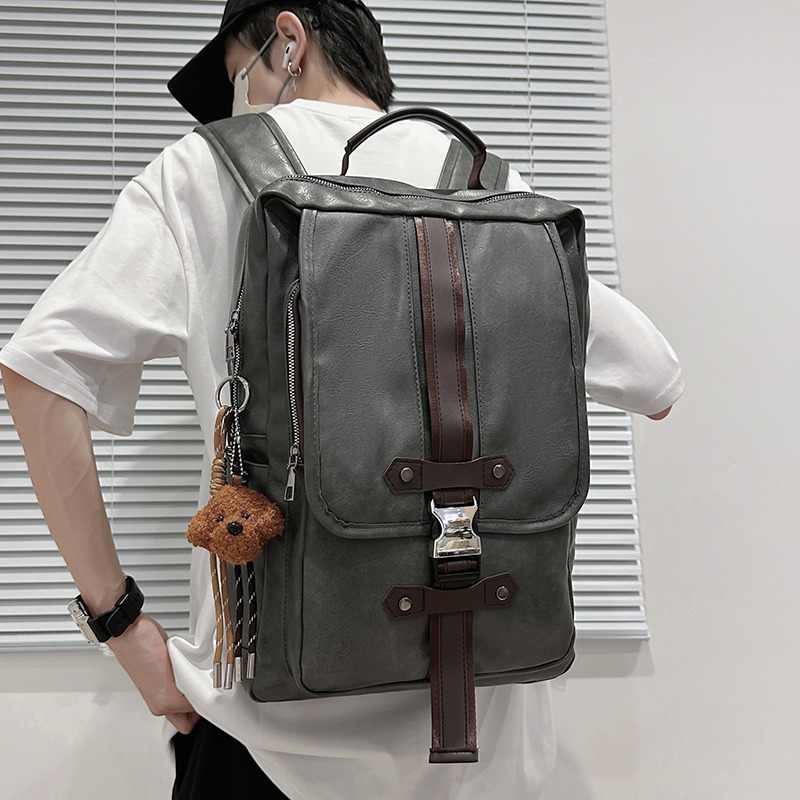 2025新款双肩包男PU软皮包韩版背包潮流青年电脑包女大学生书包