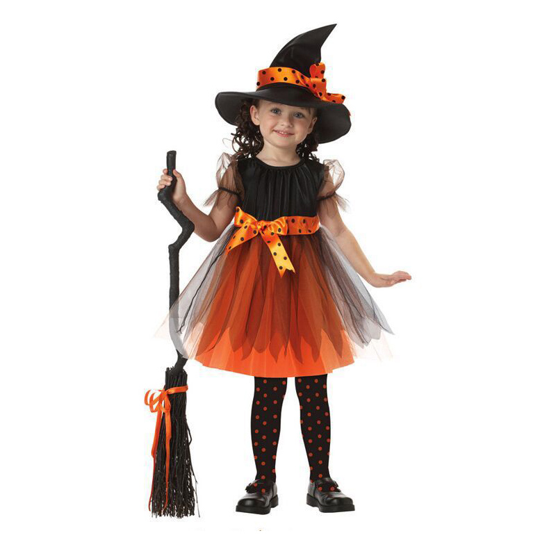 儿童万圣节演出服女童小女巫游园服装节日巫婆角色扮演手工蓬蓬裙