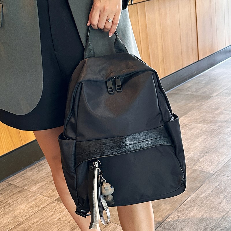 韩版尼龙单肩女牛津布双肩包两用黑色配彩带大包休闲背包时尚个性