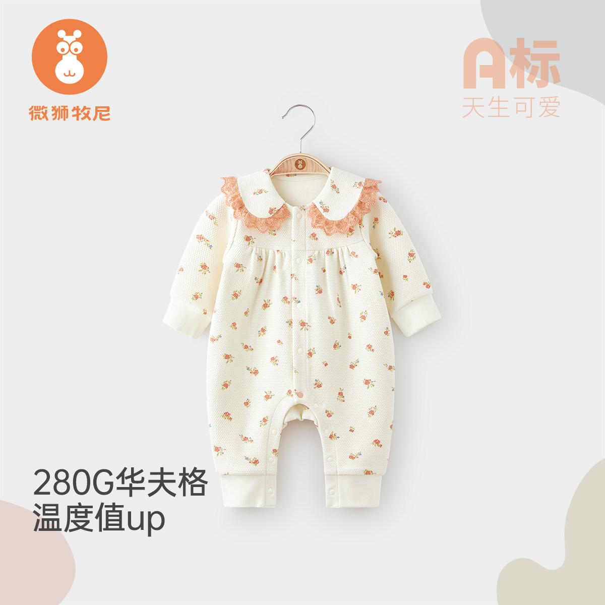 微狮牧尼婴儿秋装连体衣服春秋季女宝宝公主周岁礼服哈衣爬服睡衣