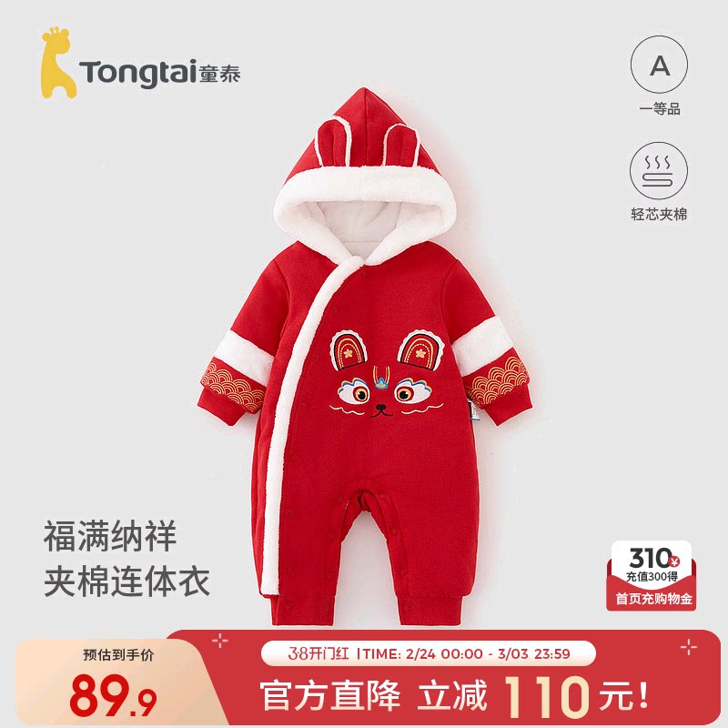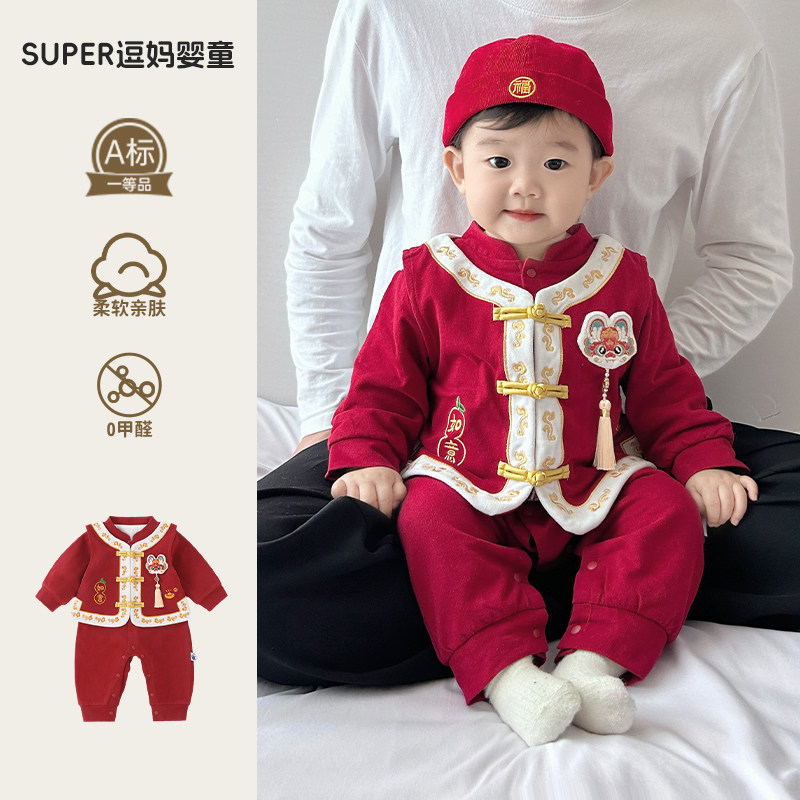 童泰婴儿连体衣秋冬季男女宝宝红色过年喜庆衣服儿童拜年服新年装