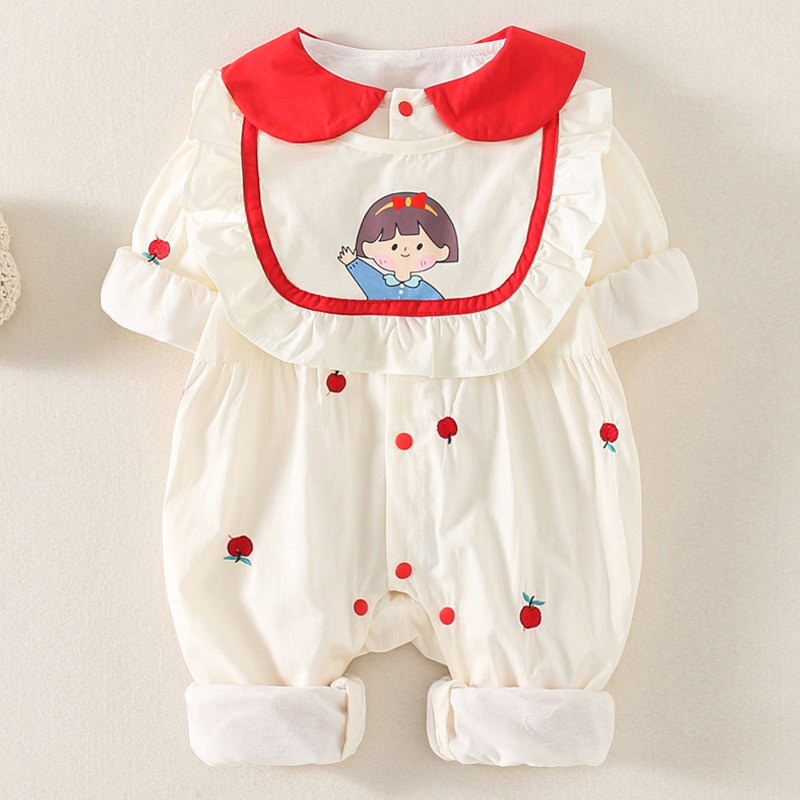 韩版婴儿秋装连体衣女宝宝衣服春秋长袖甜美印花哈衣爬服外出新生