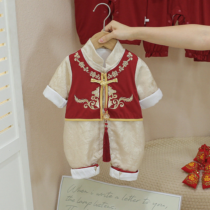 小月龄宝宝早秋衣服婴儿秋装连体衣中国风婴幼儿汉服唐装喜庆周岁
