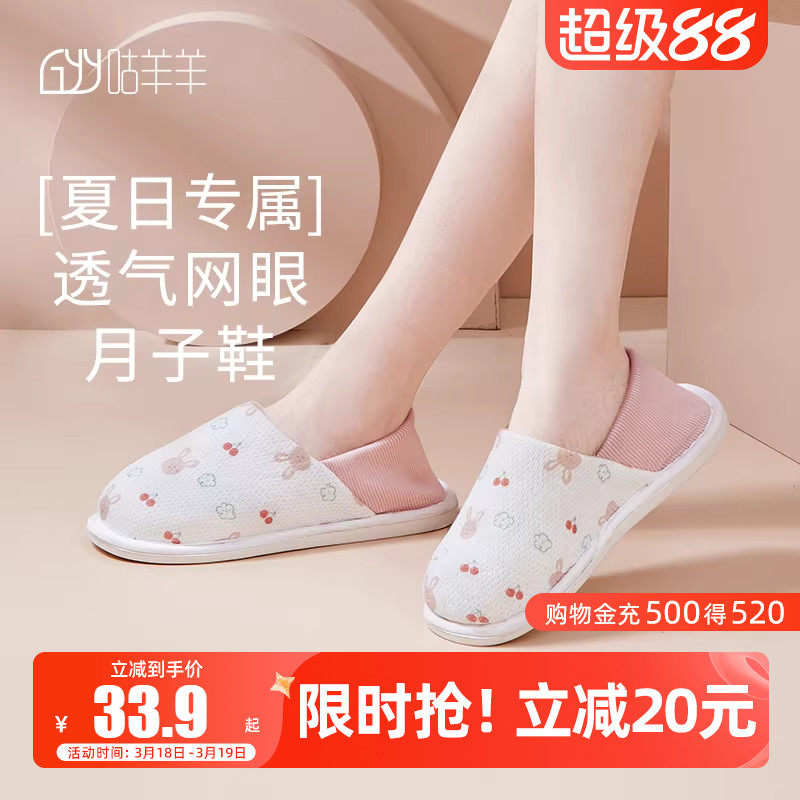 咕羊羊月子鞋夏季薄款纯透气棉产后防滑软底后包跟夏天孕妇拖鞋女