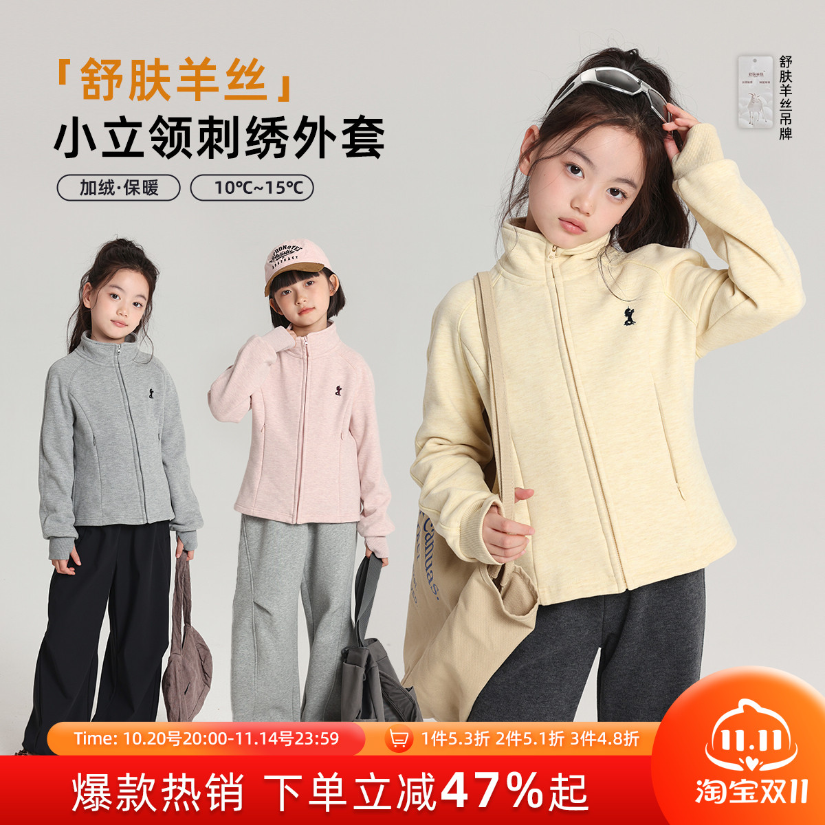 布丁哈鲁冬装女童修身上衣2025秋冬新款儿童洋气立领刺绣外套
