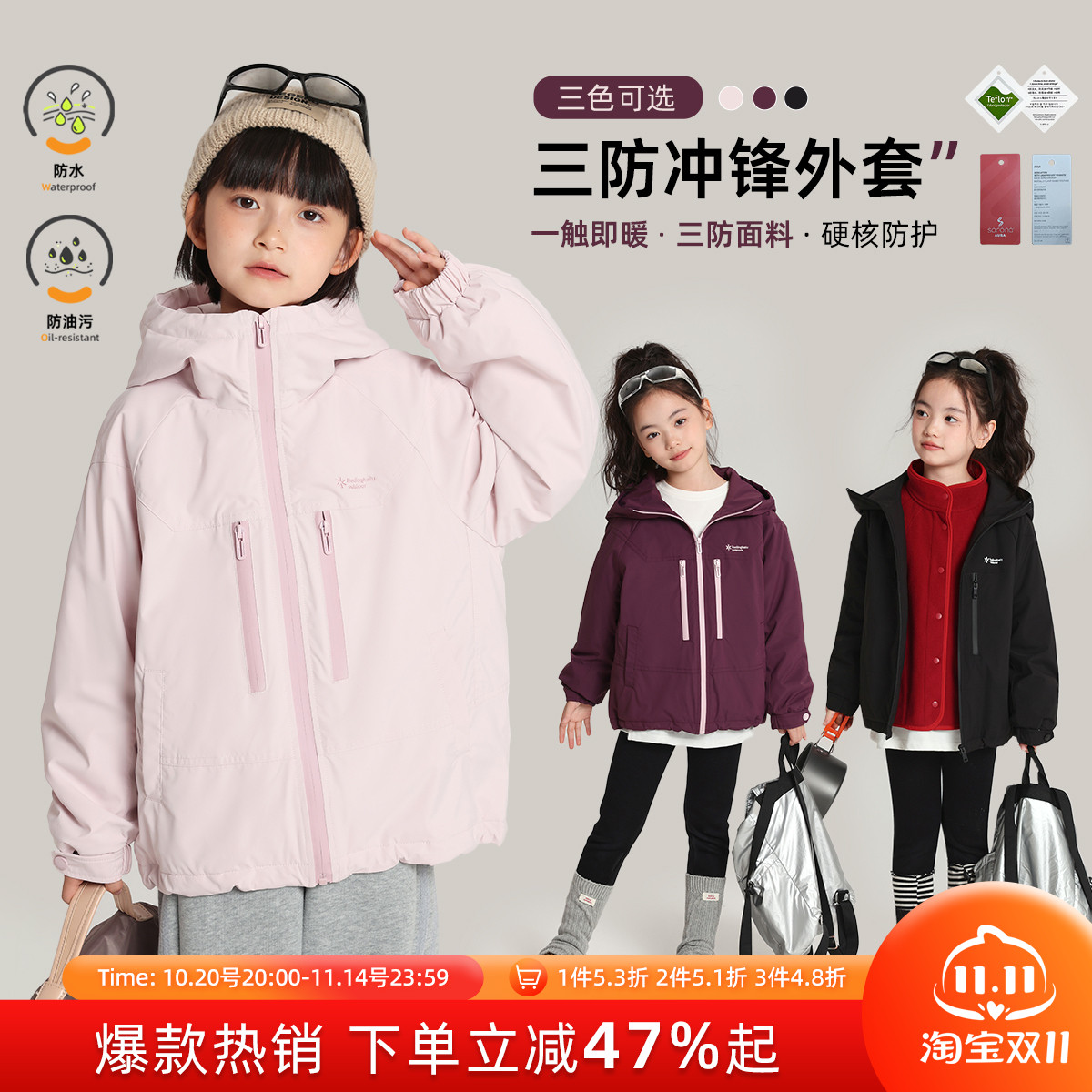 布丁哈鲁冬装女童洋气上衣2025秋冬新款儿童户外三防冲锋外套