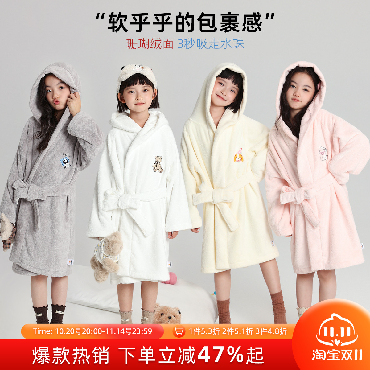 布丁哈鲁冬装童装女童上衣2025秋冬季新款儿童连帽保暖加厚浴袍
