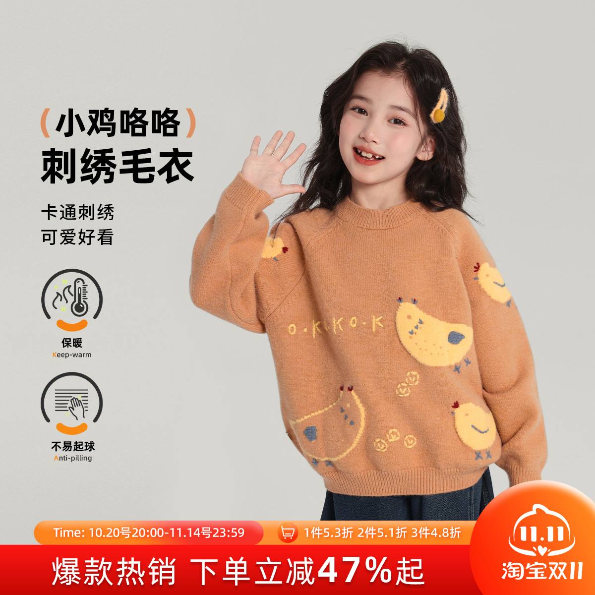 布丁哈鲁冬装童装女童洋气上衣2025秋冬款儿童百搭卡通刺绣毛衣