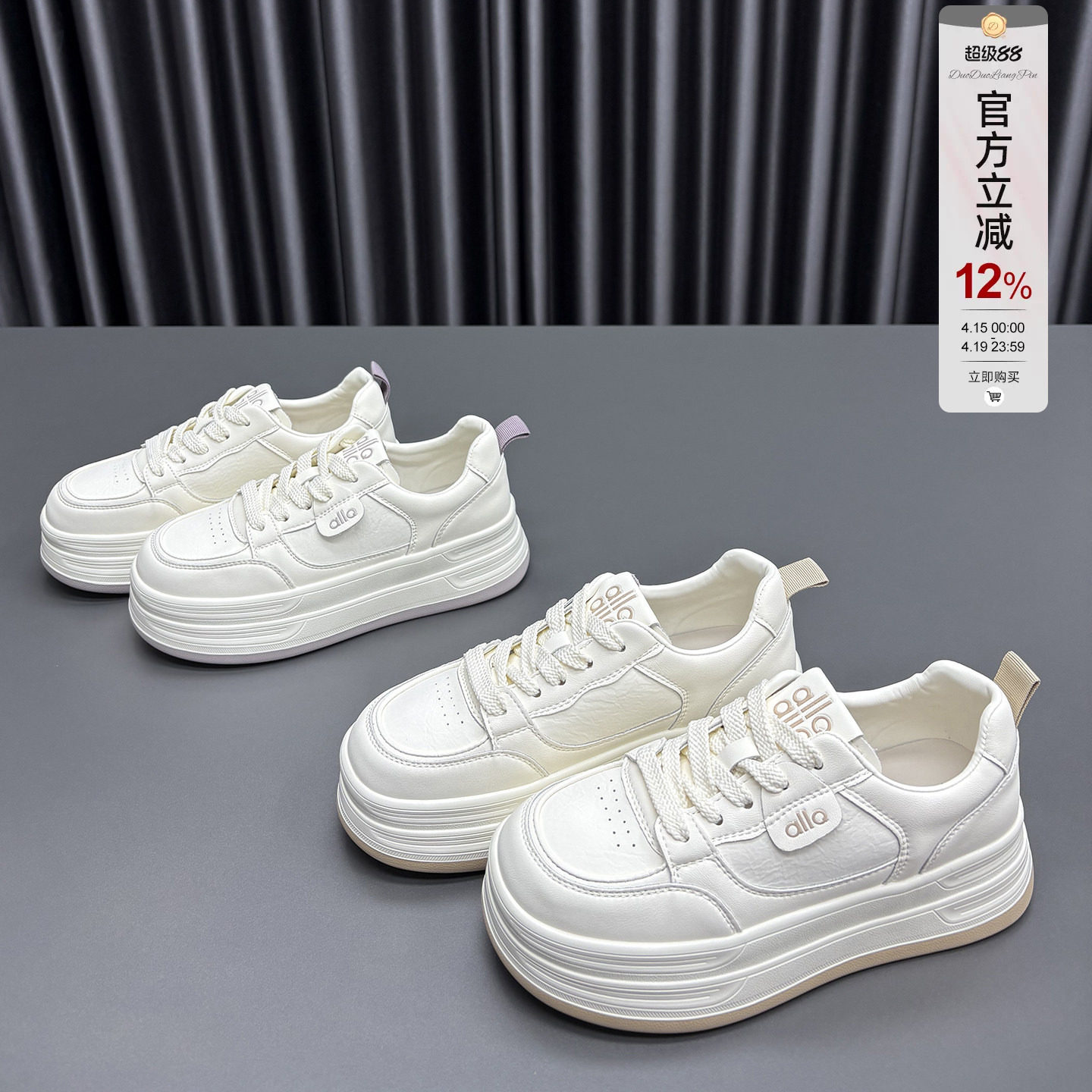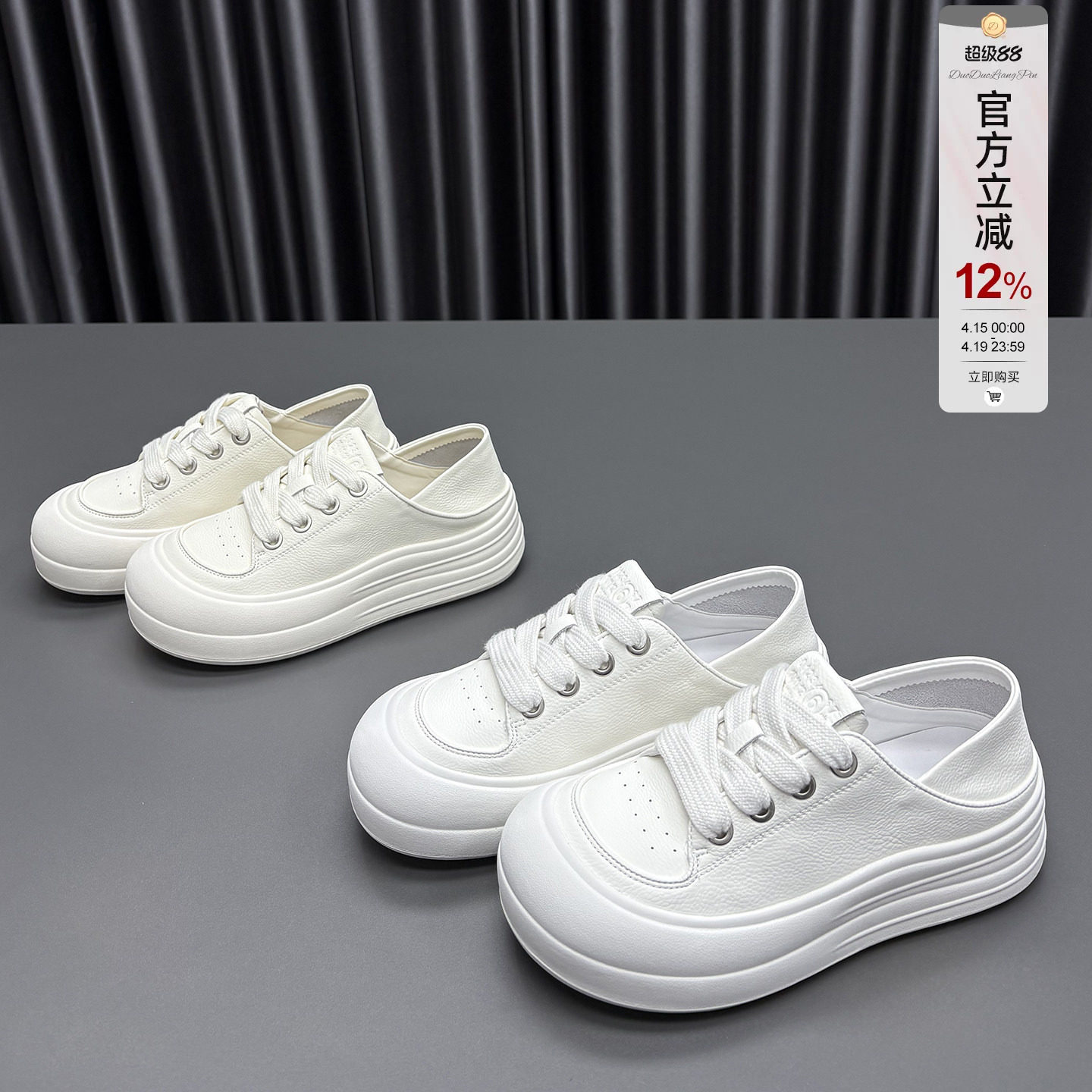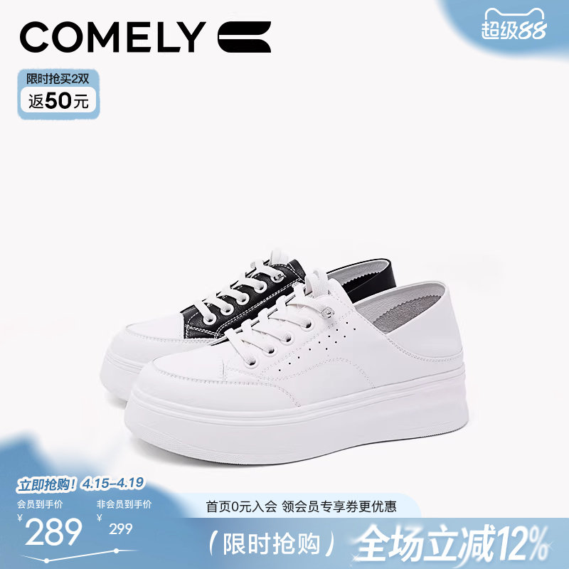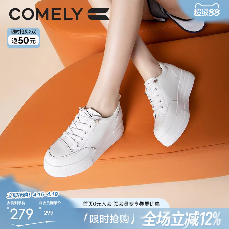 康莉商场同款厚底板鞋女春秋季圆头增高小白鞋百搭休闲运动面包鞋