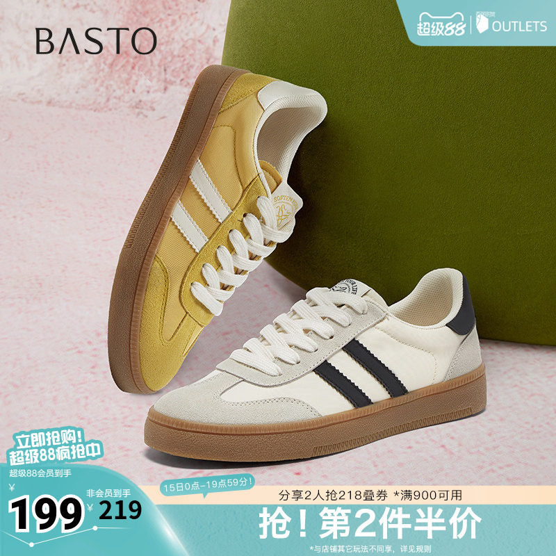 百思图春季新款简约户外运动百搭德训鞋平跟圆头女休闲鞋V2508AM5