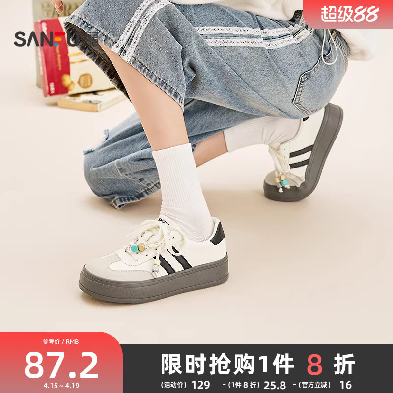 三福女板鞋夏季韩系休闲风串珠增高低帮德训鞋圆头女鞋850671