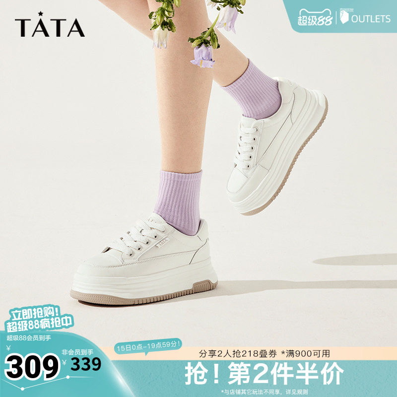 TATA他她厚底小白鞋春季新款百搭板鞋圆头增高女鞋休闲鞋DWBX1AM5