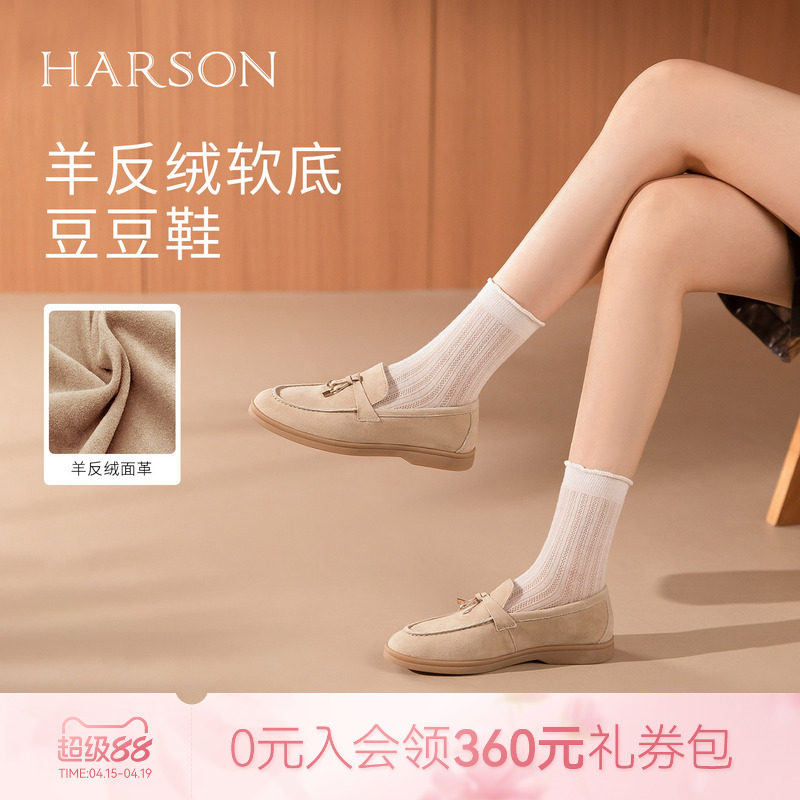 哈森精致锁扣乐福鞋女圆头平跟休闲百搭豆豆鞋2026新款HWS260159