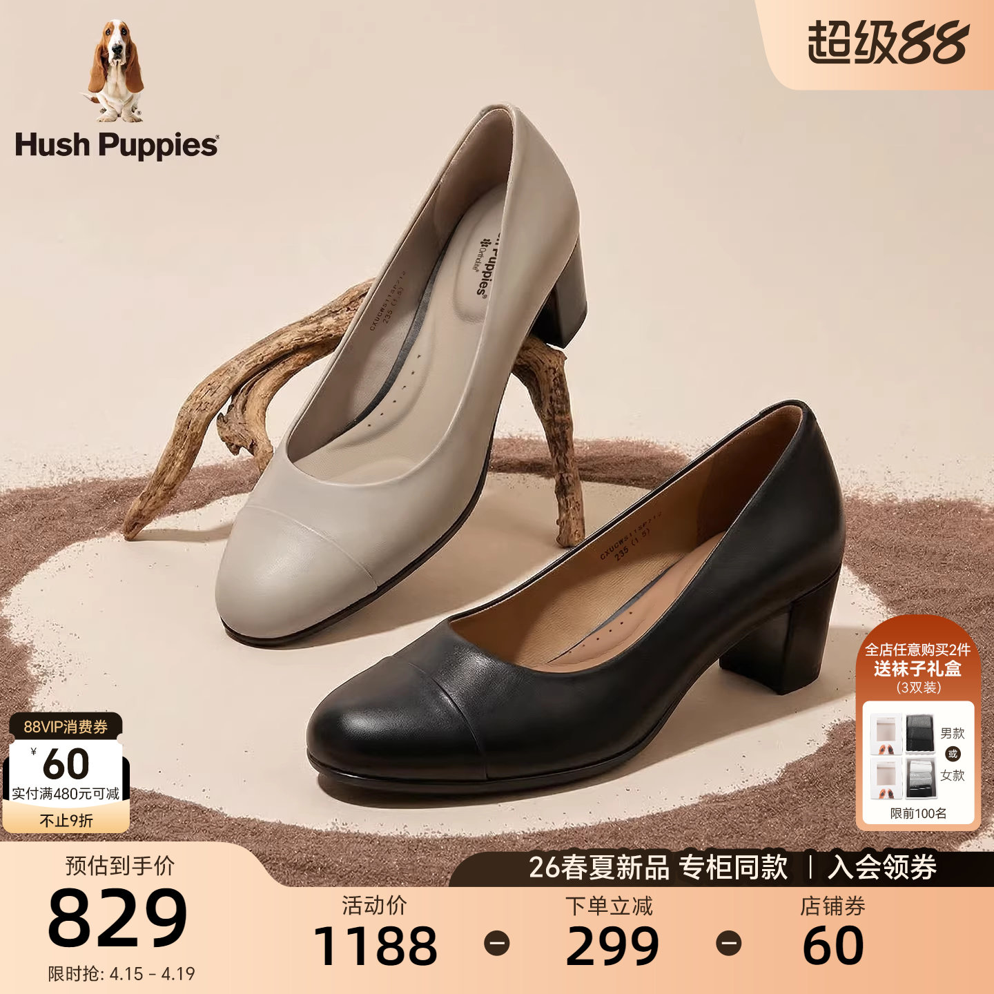 暇步士中跟鞋26春夏新款女鞋真皮圆头轻便浅口单鞋时尚增高休闲鞋