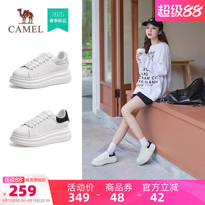 骆驼女鞋2026春季新款圆头面包鞋轻盈厚底小白鞋女休闲百搭板鞋女