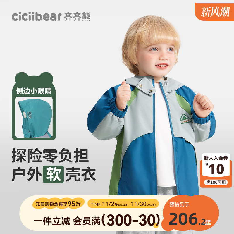 【小蛋壳】齐齐熊宝宝软壳衣男童风衣外套春秋款2025新款儿童户外
