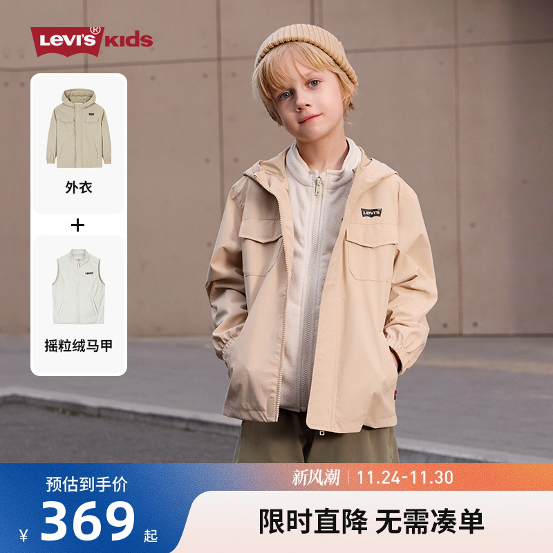 【小软壳加绒】Levis李维斯儿童风衣男童2025冬装童装防风外套女