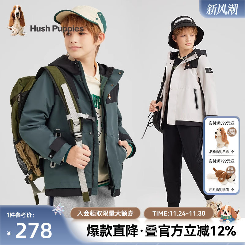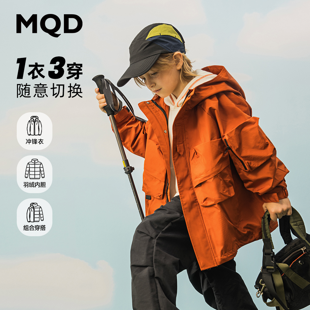 MQD童装男童风衣外套防水防风保暖秋款儿童三合一仿冲锋衣羽绒服